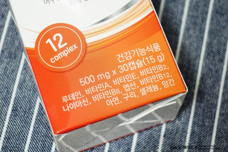 마지막으로 비타민D와 E엽선이 부원료로 포함되어 있는지 꼼꼼히 살펴봤습니다.루테인디아잔틴이 풍부하다고 해도 엽산이 부족하면 망막증 백내장의 녹내장이 될 수 있고 비타민D는 염증성 물질을 억제하면서 눈물층을 안정시키고 건조함을 완화해 줍니다.또 노화의 주범인 활성산소를 제거하고 수정체 세포막을 안정화시키는 항산화제 비타민E도 체크했습니다.성분이 가진 각각의 효능과 시너지 효과까지 얻으려면 반드시 확인해야 하는 기준입니다.