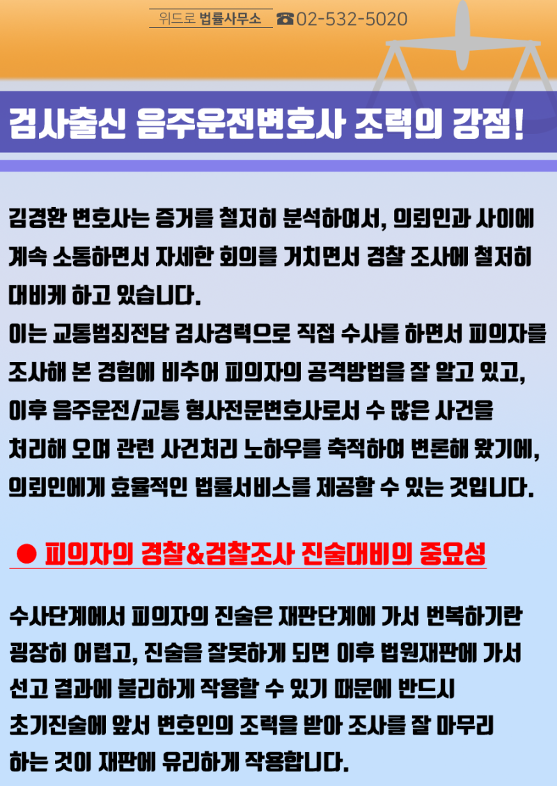 잘 아시는 바와 같이 음주운전에 대한 처벌 수위가 매우 높아졌습니다. 그런데 피해자와 제대로 된 합의가 이뤄지면 심각한 위기를 모면할 수 있다고 생각하는 사람이 있느냐, 안타깝지만 최근 서울지검이 접한 판례를 보면 전문적인 법률조력 없이는 형량 감형이 어려운 것 같다. 특히 특정 상황에서는 DUI와 관련된 법적 조언이 절대적으로 필요합니다. ‘체포 수사’가 위기에 처했거나 이미 진행 중인 경우다. 왜? 문제가 발생할 수 있습니다. 조금만 생각하면 곧 알게 될 것입니다. 구치소에 있을 경우 외부 활동이 어려울 수 있어 현실적이고 즉각적인 법적 대응이 어렵다.