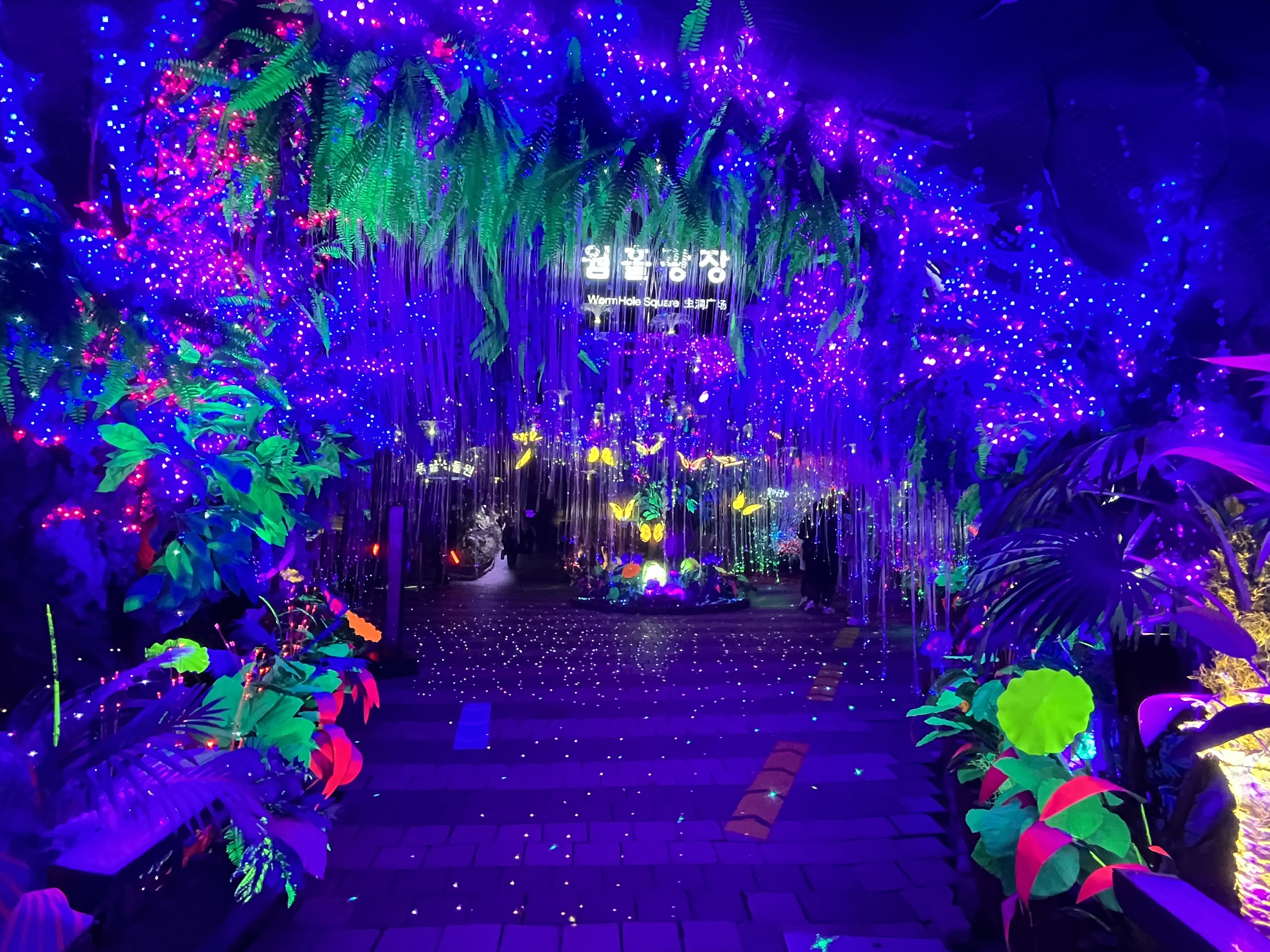 황금 폭포 섹션에서 폭포를 감상하세요. LED조명이 아름답게 빛나고 있었다