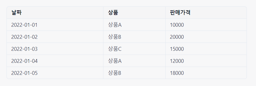 다음 판매 데이터가 있다고 가정합니다.