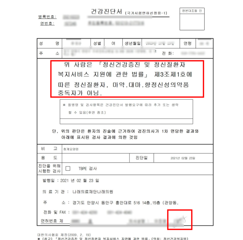 요양보호사 건강검진(약물검사)
