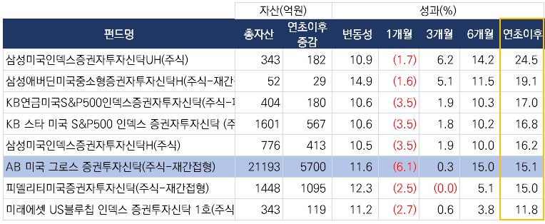 기간 9월 3일 ~ 10월 1일간의 1개월 수익률 %그럼 펀드의 설명에 돌아옵니다. 미국 투자형 펀드 중에서 환 헤지를 수행하는 없는 삼성 미국 인덱스 펀드의 성과가 좋아요. 당사가 좋아하는 AB미국 그로스 펀드의 경우 최근 1개월간의 하락률이-6%로 연초 이후 성과도 15%로 낮아졌습니다. 물론 미국 S&P500지수가 100일 수평선에서 등락을 보이며 정서가 약해지고 있는 만큼 해당 펀드의 경우, 쌓은 수익을 더 반납할 수도 있습니다. 그러나 장기 투자가라면 이런 등락 정도는 무시해도 좋습니다. 최근의 하락이 밸류에이션의 매력을 높이고 경기 펀더멘털 측면에서 여전히 건강하다는 관점에서 11월 테이퍼링이 현실화할 경우 오히려 시장은 하락을 맺고 반등할 가능성도 크기 때문입니다. 중소형, 식리칼 등에 가거나 오지 않고 대형 성장주 중심의 펀드를 그대로 유지하는 것이 장기 투자자에게 효과적이라고 생각합니다. 당장 올드·이카나미ー의 종목이 좋을지도 모르지만 지속 성장 측면에서 메가 캡 성장주를 대신하는 것은 어렵기 때문입니다.다음은 중국 투자형 펀드입니다. 중국 본토에 투자하는 이스트 스프링 차이나 드래곤 UH펀드가 연초 이후 10%로 다른 중국 펀드보다 우수합니다. 같은 주식에 투자하는 헤지도(H)펀드의 경우, 연초 이후 2.5%입니다. 즉 환율 효과가 7%이상 있었다는 것입니다. 어쨌든 중국 같은 신흥 투자는 UH형 펀드 투자가 정답이라고 생각합니다. 선진국과는 조금 다릅니다. 당사는 이제는 미래 에셋 차이나 그로스 펀드에 주목합니다. 중국이 긴축과 규제, 신용 위험 등 복합 위험에 노출되어 있다고는 해도 중국의 인터넷 대표 주자의 실적 기반 평가를 보면 국내 인터넷 플랫폼 기업보다 훨씬 싸진 상황이어서 이 근처에는 불확실성을 염두에 두고 바겐 헌팅이 될 것 같습니다. 물론 참을 수준 내에서만 접근하겠지만, 당사는 항상 정책보다는 주가는 실적이라고 믿어 왔기 때문입니다. 나중에 시간이 있으면 자문 고객을 대상으로 좀 더 심층적인 중국 투자 분석을 공유하도록 하겠습니다.다음은 인도 투자 펀드입니다. 당사는 7월 말 블로그를 통해 인도 후속 분석 글을 올렸고, 그 글로 인도 파티는 계속될 것이라고 말씀드렸습니다. 결론부터 말하자면, 더 이상 당사 포트폴리오로 인도는 없습니다. 인도가 앞으로 좋지 않을 것이라는 예언적 접근이 아니라 포트폴리오 수익과 리스크 관리 측면에서 내린 결론일 뿐입니다. 특히 부담스러운 측면을 말하자면 인플레이션과 금리 전망, 그리고 높아진 밸류에이션 때문입니다.최근 일본 주식형 펀드에 관심을 가진 사람도 많아졌습니다. 저희 회사도 긍정적으로 봅니다. 히 델리 티 재팬 펀드가 연초 이후 21%로 좋습니다. 당사에서 보면, 일본 펀드 투자는 환 헤지를 하는 것이 유리하다고 생각합니다. 기본적으로 미국의 실질 금리 상승 때 엔화가 약해지는 성격이 있는 만큼 이런 변수를 줄이는 것이 옳다고 봅니다. 중소형과 주제보다는 수출 중심의 테크놀로지와 산업재만 아니라 경기 민감 식리칼(은행, 소재 항공 여행 등)에 골고루 분산하는 펀드가 최적이라고 생각합니다.주식형 펀드의 마지막은 한국 주식형입니다. 아래와 같이 올해의 인덱스 펀드의 성과가 상대적으로 침체하고 있습니다. KOSPI지수가 연초 이후 5.4%로, 인덱스 펀드도 그 수준에 머무르고 있습니다. 한편 개별 종목에 집중하는 중소형 가치 주 펀드의 성과가 올해 좋습니다. 성과는 좋지만 돈이 계속 빠지고 있습니다. 당사는 인덱스 펀드 투자가들은 꾸준히 유지하기를 원합니다. 작은 종목의 몇몇에 의해서 수익 기여가 크다 액티브 펀드는 시장 급락 시에 유동성 때문에 그대로 껴안고 떨어질 것입니다. 펀드를 열어 보고 어떤 성격의 펀드인지 확인하고 보세요. 한국에 집중 투자하는 주식형 펀드는 매력적이지 않아요.다섯. 공모 주식 투자 펀드인 DGB자산 운용이 사명 변경을 하고 DGB공모주 플러스 펀드가 하이 공모주 플러스 펀드에 명칭이 바뀌었습니다. 지난해에 이어올해도 공모 주식 펀드 자금 유입이 상당합니다. 올바른 방향이라고 생각합니다. 다만 채권의 대용거나 금리+알파 정도 기대하는 것이지 2자릿수의 이 같은 숫자는 보기가 힘들겠죠. 물론 사모 펀드에서 이런 성과가 가능한 일도 있겠지만 이미 할 사람이 선점한 만큼 쉽게 그 자리를 내주지는 않죠. 결국 자신의 손에 제안되는 공모 주식 펀드는 나이 5%안팎의 기대 정도를 가지면 좋겠습니다. 물론 좋을 때 그렇다는 것입니다. 기대 수익을 높이기 위해서는 간접 투자보다는 직접 청약하세요.육. 국내 채권형 펀드의 연초 이후 성과%를 봐주시면 채권 상황이 얼마나 축소됐는지 확인할 수 있습니다. 올 들어 9개월이 지났지만 중단기 채권형 펀드 중 1%가 넘는 것은 찾을 수 없습니다. 게다가 KODEX 종합 채권과 같은 채권 ETF는 마이너스 성과입니다. 당사는 채권 엑소더스와 리츠나 인프라, 공모주 등이 상대적으로 매력적인 만큼 부동산 인프라 펀드에 관심을 가져달라고 계속 말씀드리고 있습니다.일곱. 해외 채권형 펀드는 그래도 하이일드 채권 투자 펀드의 성과가 올해 매력적입니다. 일단 미국 달러 우량 회