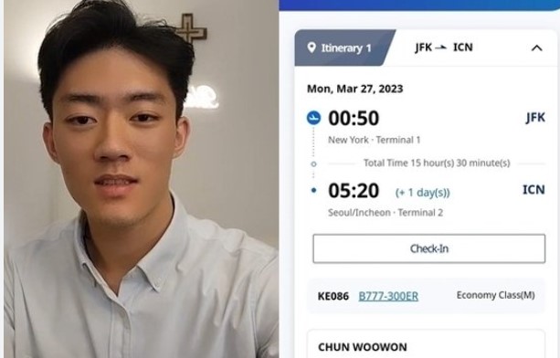 전우원은 뉴욕발 비행기 예약 내용을 공개하고 한국행 비행기에 탑승하며 “도착 후 바로 광주로 날아가겠다”고 말했다.