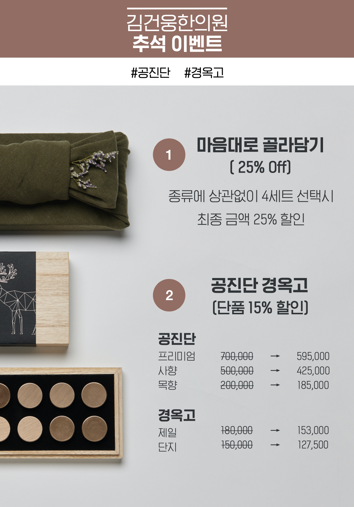 추석을 맞아 여주이천중앙병원이 추석선물인 진규국과 공진단을 준비했는데, 여기에 살을 빼는 한약재를 할인해준다.