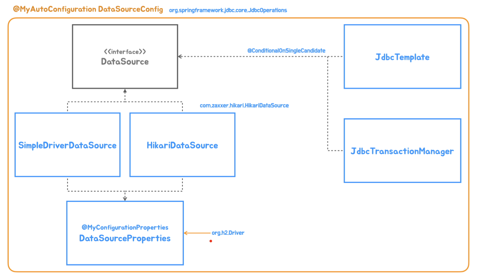 MyAutoConfigurationDataSourceConfig라는 구성 정보 클래스를 만들고 모든 것을 넣기만 하면 됩니다.