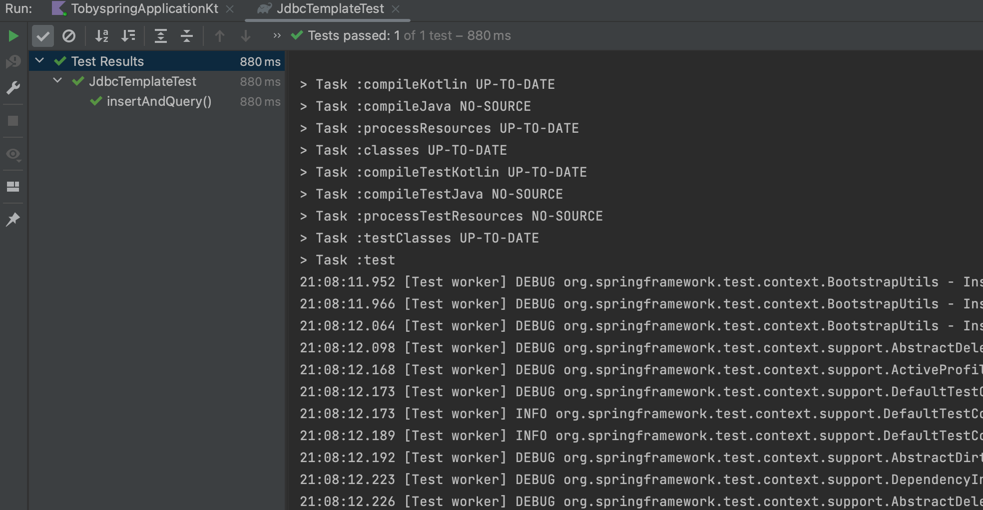 JdbcTemplate에 대한 테스트 코드를 생성하면 다음과 같습니다.