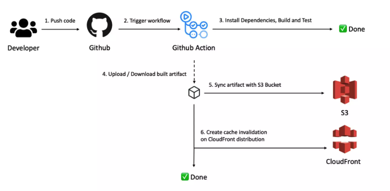 CD 워크플로에는 빌드된 React 앱을 S3 버킷에 업로드하는 작업이 포함됩니다(S3 배포).