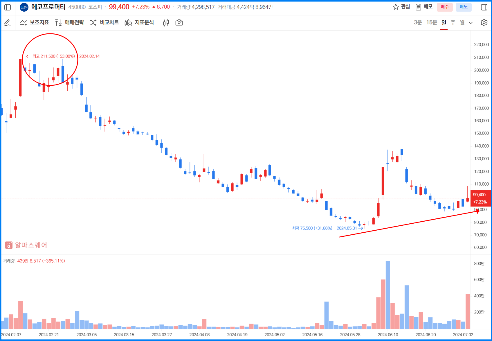 에코프로머티의 기업실적을 보면 매출은 계속 늘고 있지만, 가장 아쉬운 점은 영업이익이 감소하고 있다는 점이다. 그리고 전구체 사업의 실적이 계속해서 가파른 성장을 할 것이라고 생각했는데, 2024년 매출이 감소하고 있다는 점도 가장 큰 타격 중 하나입니다. . 특히 영업이익을 보면 2024년 1분기부터 지속적으로 적자가 쌓이고 있다. 예전에는 기업 차원에서 IR을 진행했지만, 실제로는 이러한 적자 내용이 기업 차원에서 제대로 소개되지 않았다. 그렇기 때문에 투자자들이 느끼는 상실감은 더욱 커진 것이 사실입니다. 이런 상황에서 2차전지 산업에 대한 대외 불안이 커지는 것도 주가 하락에 한몫하고 있다.